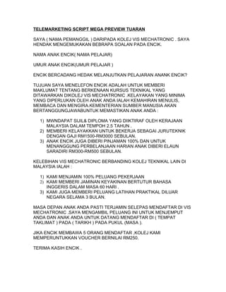 Telemarketing Script Mega Preview Tuaran